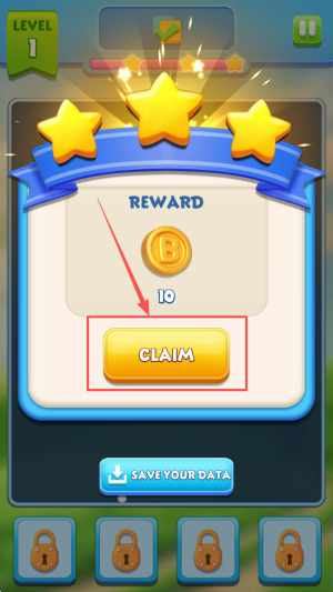 4、保存进度:在奖励界面点击“CLAIM”,再点“SAVE YOUR DATA”保存当前等级。