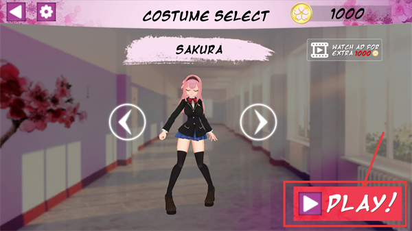 1、在【COSTUME-SELECT】界面选择角色装扮后,点击【PLAY!】按钮即可进入游戏关卡。
