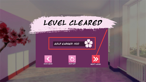 4、关卡通关后会获得【GOLD-EARNED:500】奖励,点击【NEXT-LEVEL】按钮可进入下一关。