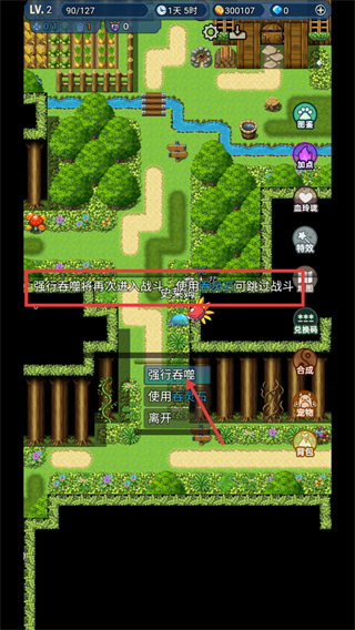 2、面对目标可选择【强行吞噬】再次进入战斗,或用【吞灵石】跳过战斗,按需选择提升效率。
