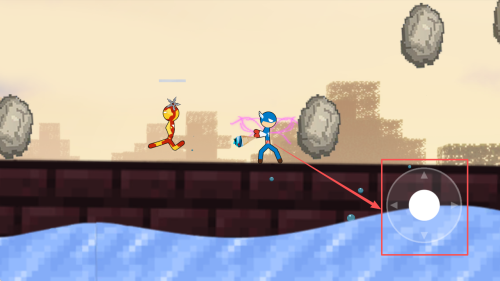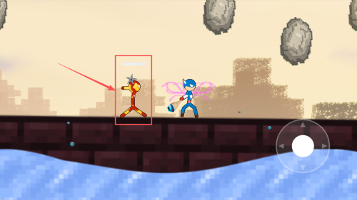 2、控制角色移动:使用屏幕上的虚拟摇杆控制角色在平台上移动,接近敌人准备攻击。