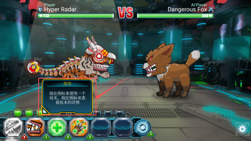 1、 进入游戏后先挑选初始动物机甲,熟悉其技能类型(攻击 / 防御 / 回复),在新手模式中练习基础战斗操作 。
