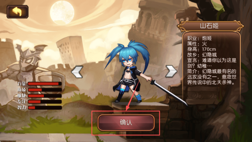 2、确认角色信息:查看角色的属性和背景故事,确认无误后点击“确认”按钮。