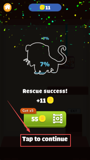 4、领取奖励:点击“Tap to continue”领取x5倍奖励,最后按“EXIT”返回主界面。