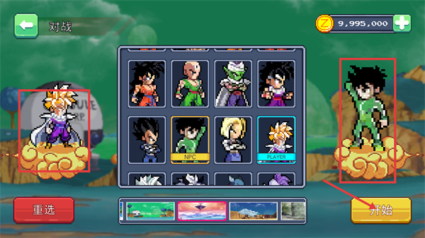 龙珠战士超神之战无限金币是一款聚焦龙珠IP的像素动作格斗作品,凭借无限金币设定解锁全角色养成自由,以复古像素画风还原热血对战场景,搭配多元玩法与流畅操作,让玩家在无资源限制的前提下,尽情享受与经典角色并肩作战的情怀,感受酣畅淋漓的格斗快感。操作布局科学合理,方向键与四个技能键的搭配符合格斗习惯,轻松实现技能组合,连招释放灵活自如。
