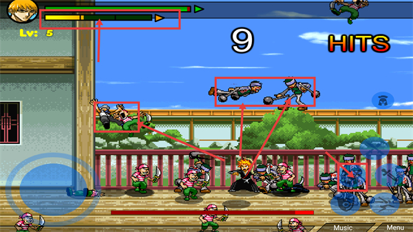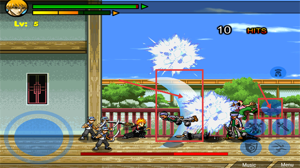 4、维持【9-HITS】连击状态时,利用技能的群体效果同时攻击多名敌人,快速清空战场目标。