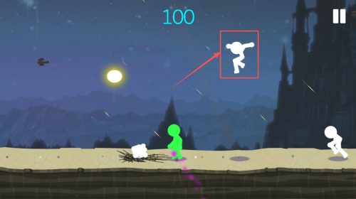 2、控制角色:点击屏幕中的“点击移动”提示,控制火柴人角色移动。