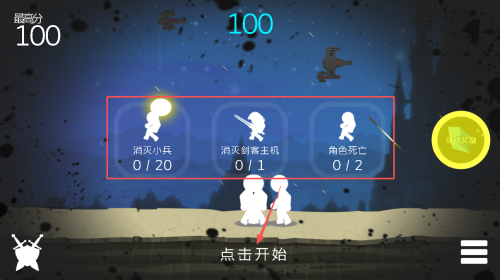 4、完成关卡:消灭所有敌人后,点击“点击开始”按钮,结束当前关卡并进入下一关。