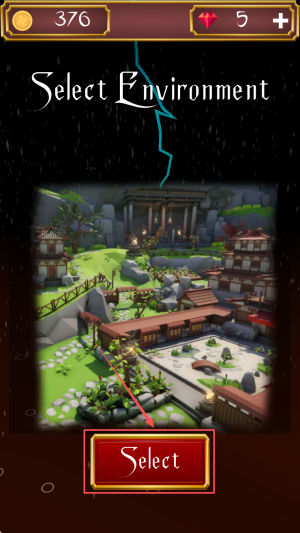 3、选择环境:在环境选择界面,点击“Select”按钮,选择你想要进行战斗的环境。