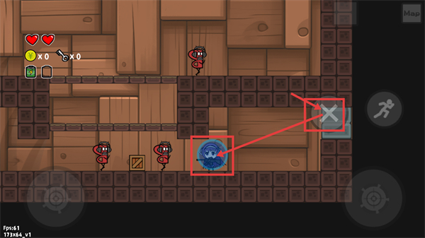 2、关卡中遇到敌人时,操控角色躲避攻击的同时,点击攻击键对敌人输出,注意界面右上角的关闭按钮用途。