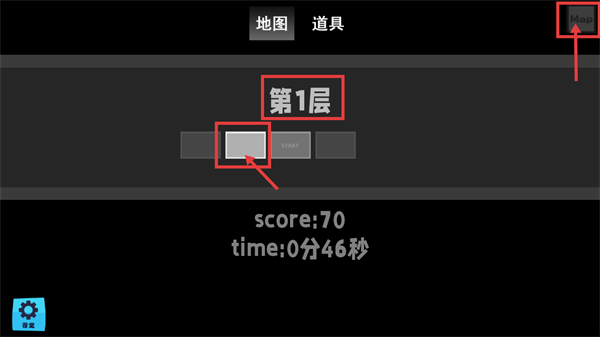 3、点击【Map】可打开地图界面,查看【第1层】的关卡进度,结合【score:70】数据调整通关策略。