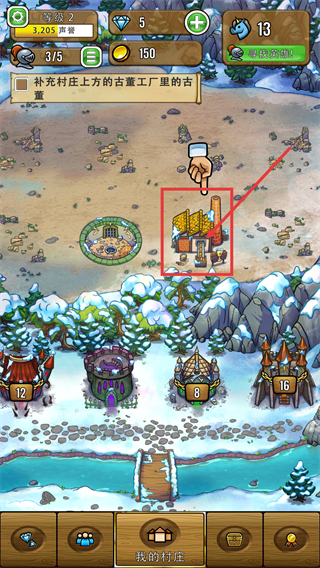 2、定位村庄上方的【古董工厂】建筑,点击该建筑可进入其功能界面处理任务。