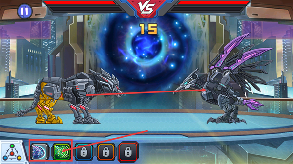 2、进入【VS】对战界面后,注意上方的【15】倒计时,同时利用已解锁的技能图标,在战斗中及时释放技能提升输出。