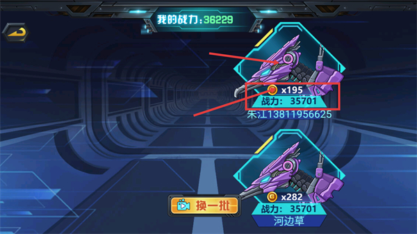 2、对比【我的战力-36229】与对手的【战力-35701】,选择战力略低的对手挑战,获胜可获得【x195-金币】,也能点【换一批】刷新对手。