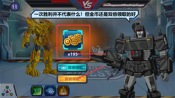 4、战斗胜利后,可选择【直接领取】获得【x195-金币】,也可通过【双倍领取】看视频获取翻倍奖励,快速积累资源。