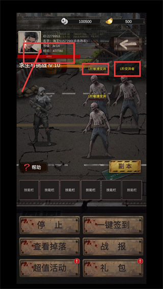 3、面对【1阶敏捷变异】与【1阶变异者】的多敌战斗,优先提升等级至【Lv.14】以增强战斗能力。