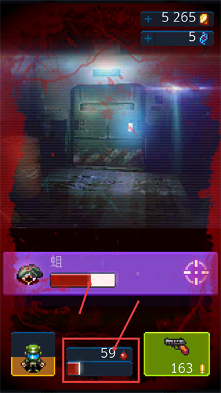 3、对战【蛆】类敌人时,需留意自身【59-生命值】状态,结合【手枪】的攻击来消耗敌方血量,避免血量过低。