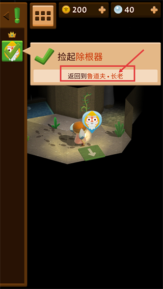 3、拾取【除根器】后,根据提示选择【返回到鲁道夫·长老】选项,回到对应NPC处交付道具完成任务。
