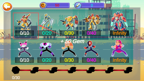 4、逐个攻克风格各异的关卡,击败沿途强敌,不断突破自我极限,向着最强火柴人英雄的目标前进。