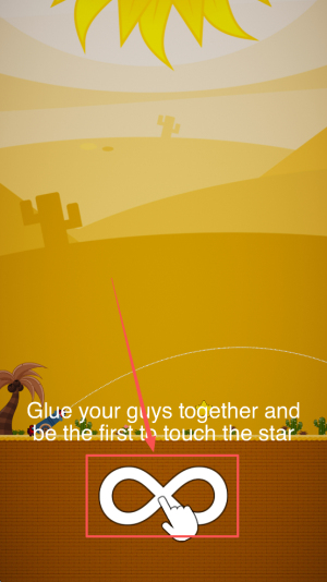 2、了解规则:阅读提示“Glue your guys together and be the first to touch the star”,准备黏合角色。