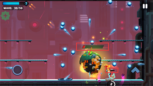 2、在首领战中攻击【球形首领】,每次攻击会造成25/40等数值伤害,同时通过移动躲避其技能弹幕。
