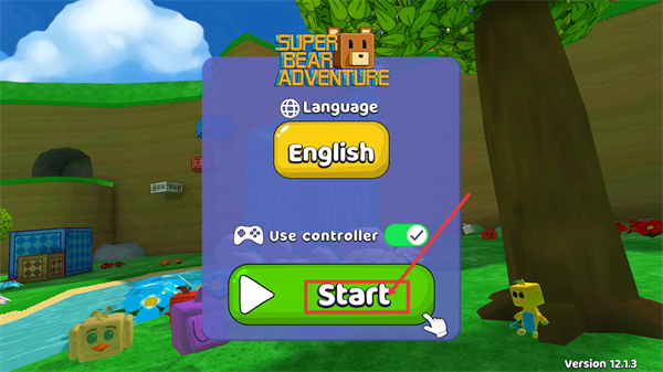 1、进入【SUPER-BEAR-ADVENTURE】启动界面,【Use-controller】开启后,点击绿色的【Start】按钮即可进入游戏冒险。