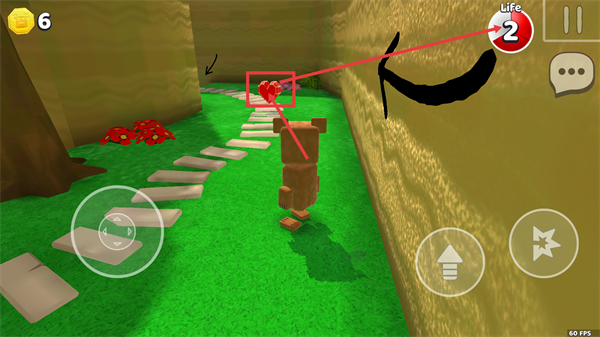 4、在路径上遇到【红心】道具时,控制【小熊】移动至其位置收集,可用于维持或提升右上角的【Life】数值,助力后续冒险。