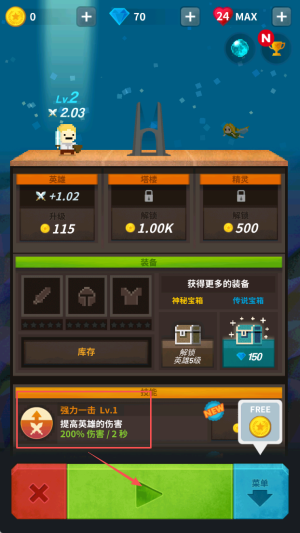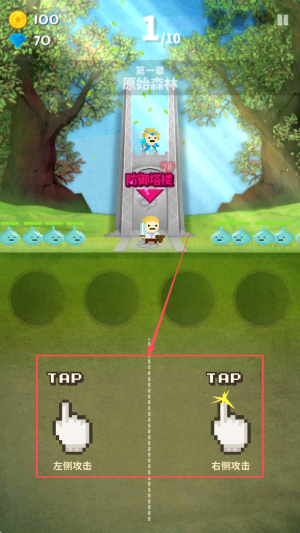 1、操控勇士开启闯关,通过连续点击屏幕击杀城堡中的怪兽,突破恶龙手下的层层阻拦,向恶龙核心推进。