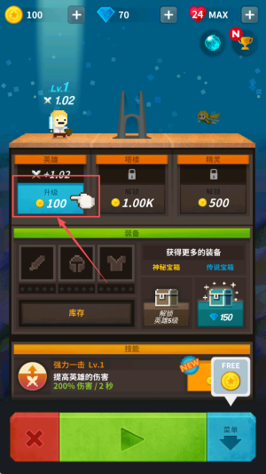 4、升级角色:战斗结束后,进入角色升级界面,点击“升级”按钮,使用金币提升角色能力。