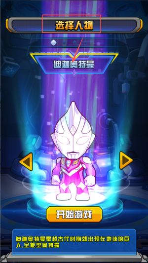 3、选择角色:在角色选择界面,点击“选择人物”按钮,选择你想要扮演的奥特曼角色。