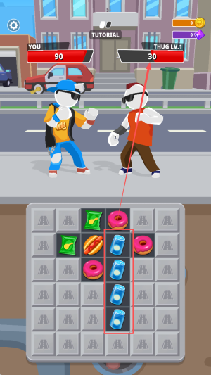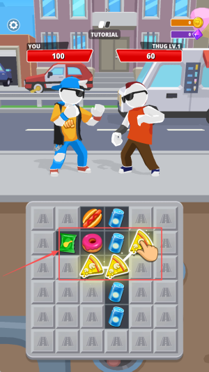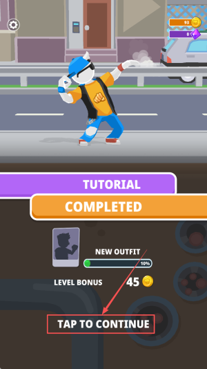 4、完成教程:击败对手后,教程完成,点击“TAP TO CONTINUE”按钮,领取奖励并继续游戏。