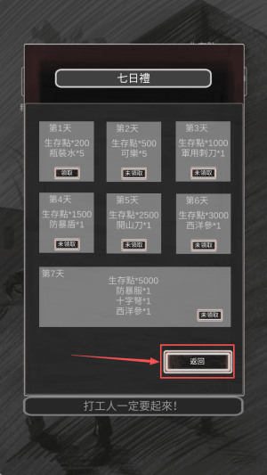 2、领取奖励:在主界面中,点击“七日礼”查看每日奖励,点击“领取”按钮获取相应奖励。