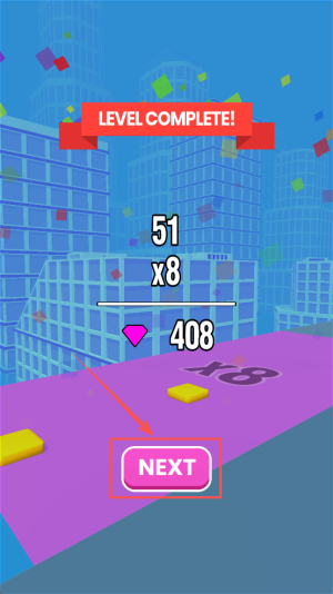 4、领取奖励:出现LEVELCOMPLETE,点击NEXT,立刻进入下一关。