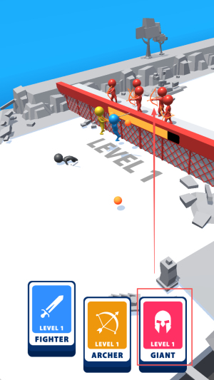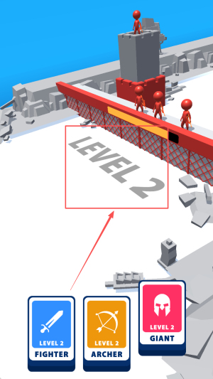 4、切换兵种:出现LEVEL2提示,挑选FIGHTER、ARCHER或GIANT,立刻进入下一关。