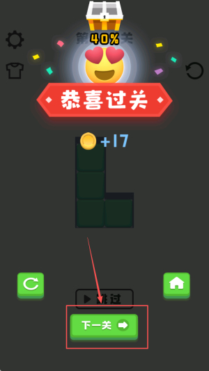 4、领取奖励:出现恭喜过关,点击下一关,立刻继续挑战。