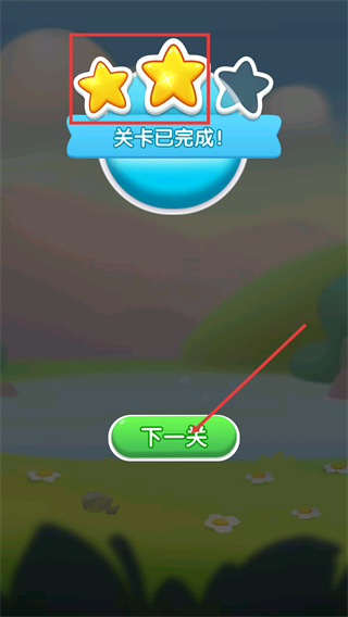 4、达成关卡目标后显示【关卡已完成!】,获得对应星星评级,点击【下一关】按钮即可进入后续关卡继续挑战。