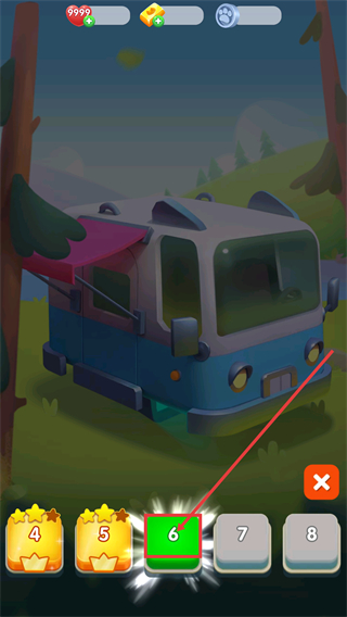 1、确认界面中的【6】关卡标识,点击该标识即可开启本关,后续需完成对应收集目标来推进第6关的关卡进度。
