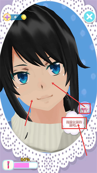 2、进入互动界面后,按照提示【拖拽女孩的脸吧】执行拖拽操作,触发角色互动反馈并提升进度。