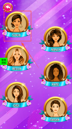 2、选择角色:在角色列表点击“SOFIA”头像,确认使用的公主形象。