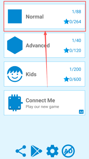 2、选择模式:在主菜单点击“Normal”图标,进入普通难度关卡列表。