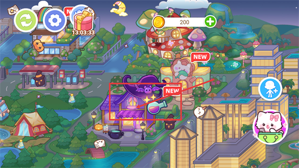 1、在主场景中找到带有【NEW】标识的紫色店铺,点击进入该店铺,可触发新的互动玩法。
