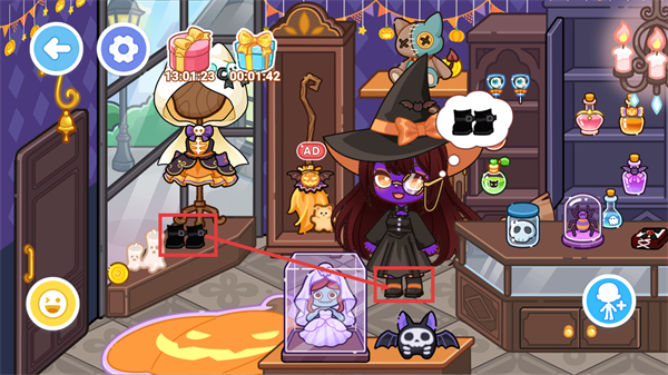 3、找到目标物品(黑色靴子)后,点击该物品可完成收集,同时角色会装备对应的物品。