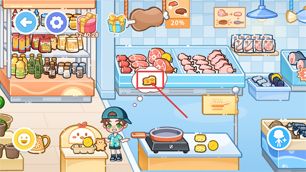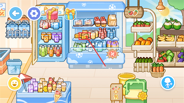 3、在冷藏柜区域,找到角色需求的【目标物品】并点击,即可将其取出,用于后续的商店操作。