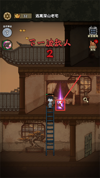 3、面对【下一波敌人-2】的提示,优先收集场景中的【钥匙】道具,提升通关所需的关键物品储备。