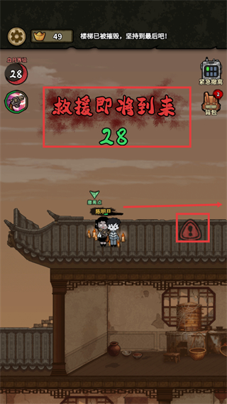 4、当提示【救援即将到来-28】时,前往【撤离点】与幸存者汇合,坚持至救援抵达以完成关卡目标。