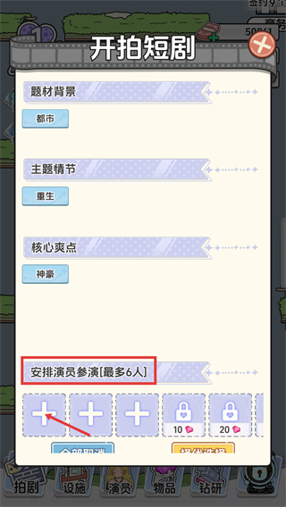 3、全权把控短剧制作流程,从题材挑选、剧名拟定,到演员筛选、资金投入,每个环节都由玩家自主决策。