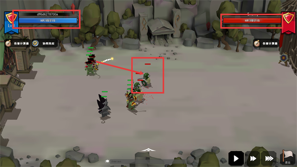 3、战斗中需关注双方【HP】状态,利用英雄技能输出敌方单位,可通过调速按钮控制战斗节奏以优化操作。