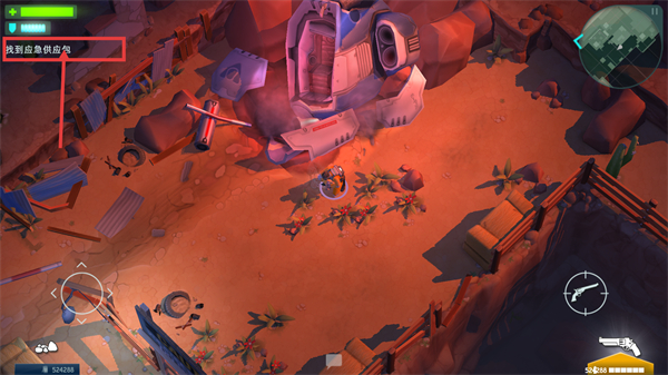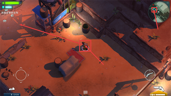2、借助右上角地图标识的目标位置,操控角色向对应区域移动,持续推进以找到【应急供应包】。