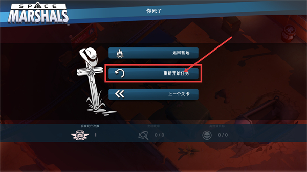 4、若战斗失败显示“你死了”,可点击【重新开始任务】按钮,重新进入关卡继续完成目标。