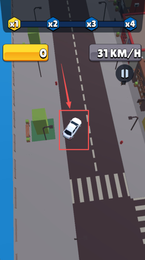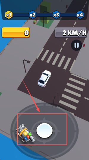 3、开始游戏:在车道界面查看初始速度2KM/H,点击屏幕加速冲撞目标。